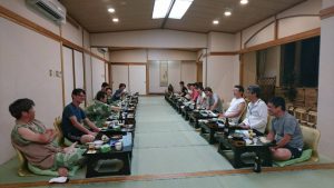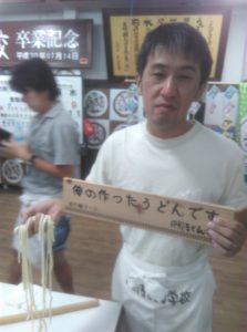 アクティビティは釣り、登山とゴルフです。2日目はみんなでうどん学校に入学、無事卒業できました。